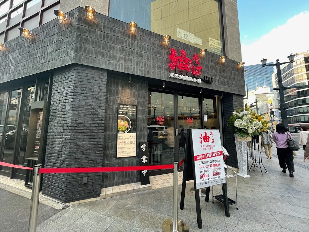 路面店でかなりファザードもしっかり造られており存在感と重厚感ある雰囲気がインパクト大!!油そばとは…?と私も思いましたが、つい、こってりをイメージしがちですが、なんと通常ラーメンよりカロリー&塩分も控えめと朗報です♪汁に漬かっていないいないアツアツ麺に特製タレを絡めて食べるそうで、麺は自家製麺でもちもちが売り♪(今日は並んでおりまして…出直します☆)トッピングの他、一品料理の水餃子等も特製!油そばと一緒に堪能してみてください♪