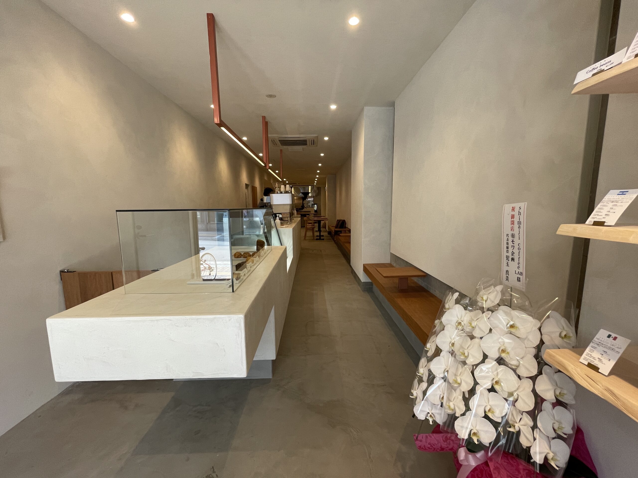店内もとてもお洒落…♪カウンター前には長椅子が設置されているので、注文後の待ち時間にも優しいお店でした…♪イートインブースはテーブルもご用意していますのでゆったりとカフェタイムを満喫ください♪(私は焼き菓子テイクアウトさせてもらいました。ジャスミンのパウンドケーキ等…とても美味♪)