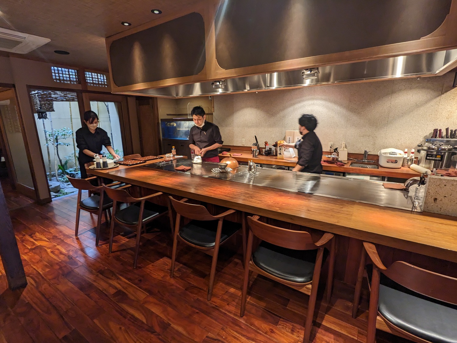 内装も落ち着いた空間で、1階にはカウンター数席と小団体向けの個室、2階には3個室程ありますので、こちらも小団体に対応もでき、会合やお祝い等のイベントにもぴったり♪内装も穏やかな和のテイストで、坪庭の雰囲気も良き♪単身様も、プチ贅沢・ご褒美に鉄板前のカウンターで、広島牛専門の精肉店【ビーフ青ひげ】の贅沢ステーキを堪能するのはいかがでしょうか…(^_-)-☆