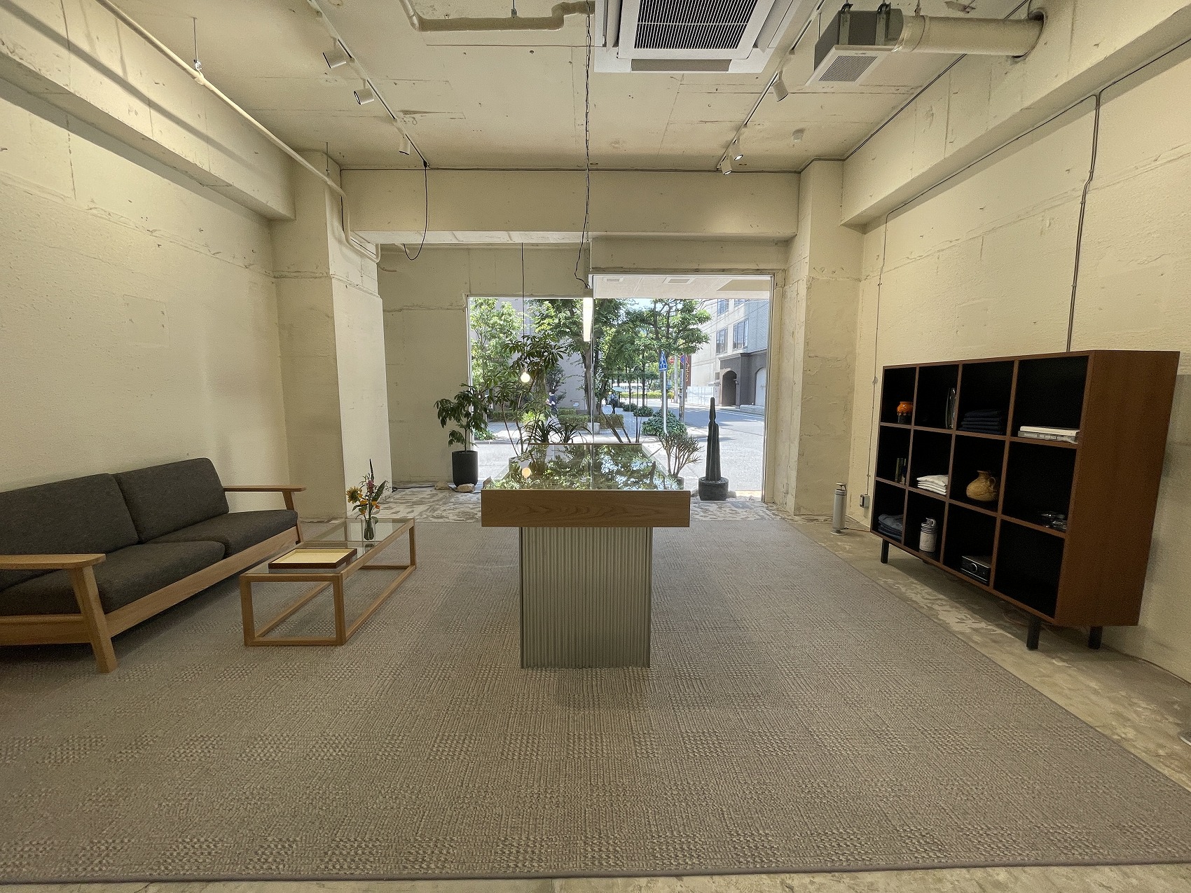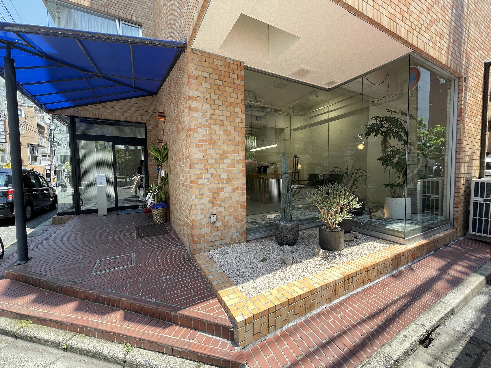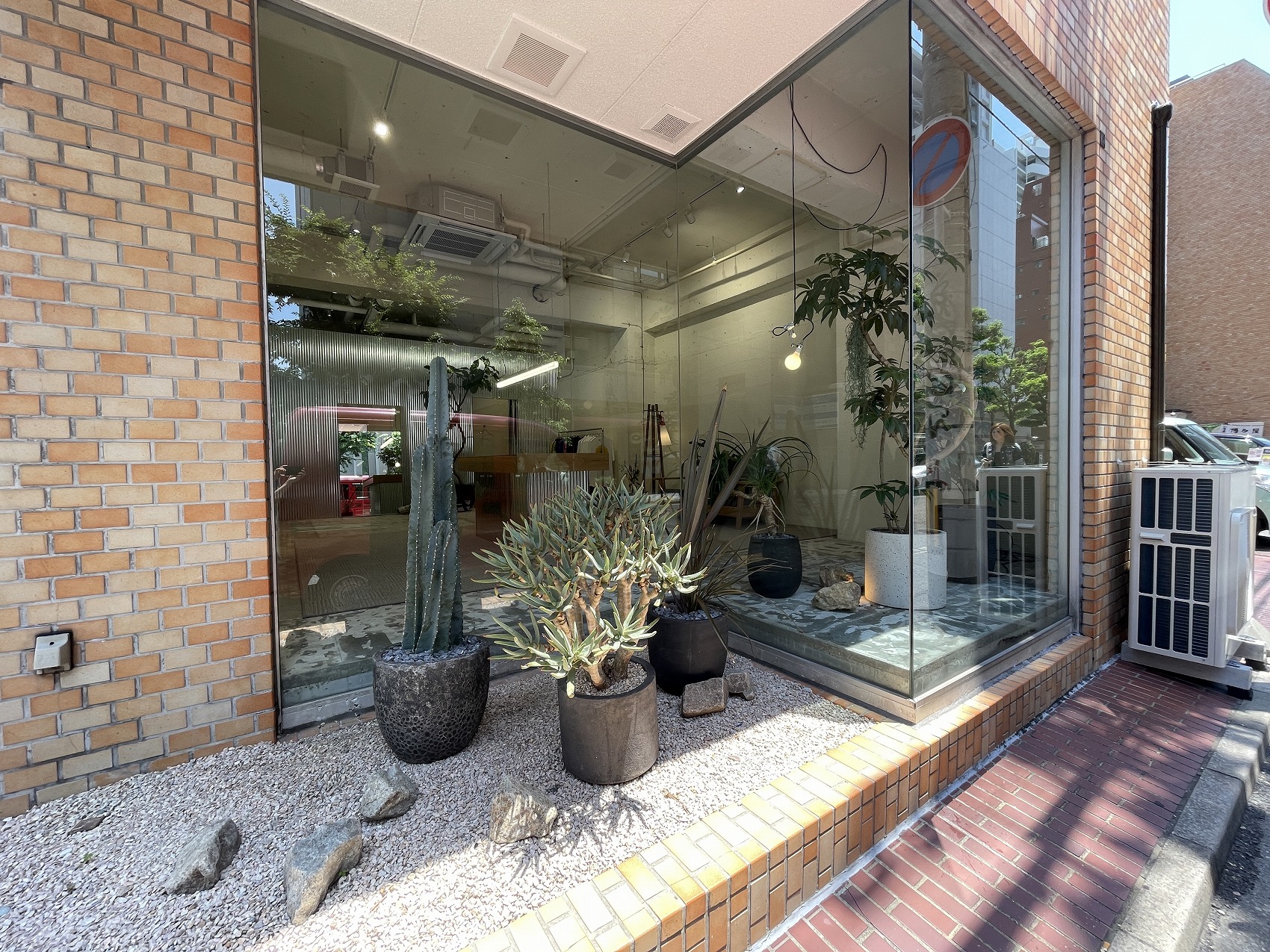店内も天井高を活かし、ガラス張りの開放的な空間に!白基調とし、たくさんの観葉植物がリラックスでき、ゆったりソファーで打ち合わせも快適♪古びた箇所は活かし店舗改装にもこだわりましたね(*’▽’)