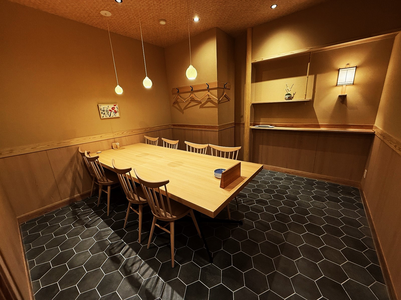 中町の天麩羅すえ廣様の姉妹店、”ひとくち揚げ すえ廣”様がこの9月6日にグランドOPEN致しました!店舗はとても広い空間で完全スケルトンから新装されました(^^♪店舗はカウンター席はじめ、25名前後の団体様も利用できるお席の他、最大10名前後で利用できる完全個室もご用意あります。個室も広々しており、会合や誕生日会等のイベントにもご活用いただけます!店舗全体あたたかみのある木を基調に、やわらかく居心地のよい雰囲気がとても素敵です|ω・)