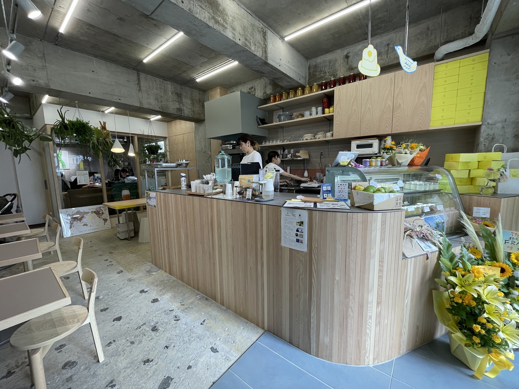 早速店舗立ち寄らせて頂きました!お店はとても開放的な空間でお洒落なデザインで、入口の造作も店舗アプローチとして一体感もありステキです(^^♪店舗に入ると更に、店舗飲食ブースと奥にも開放的オフィス併設!斬新なアイデア且つ閉塞感を払しょくする大胆な造りでした(*_*)!!